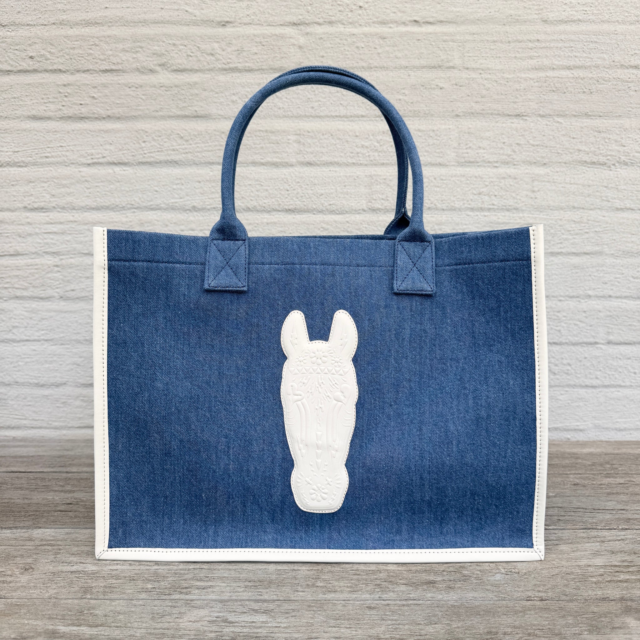 The Horse Lovers Unite Denim Tote in size large is designed to carry it all – from laptops and lunch boxes to beach towels and weekend essentials. Whether you're heading to work, the stables, or straight into the city, this bag has your back.
