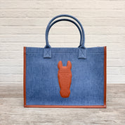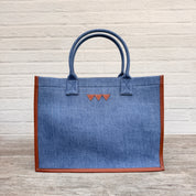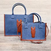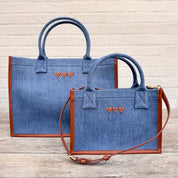 Denim Tote bag bundle - 1 Small & 1 Large, Brown leather