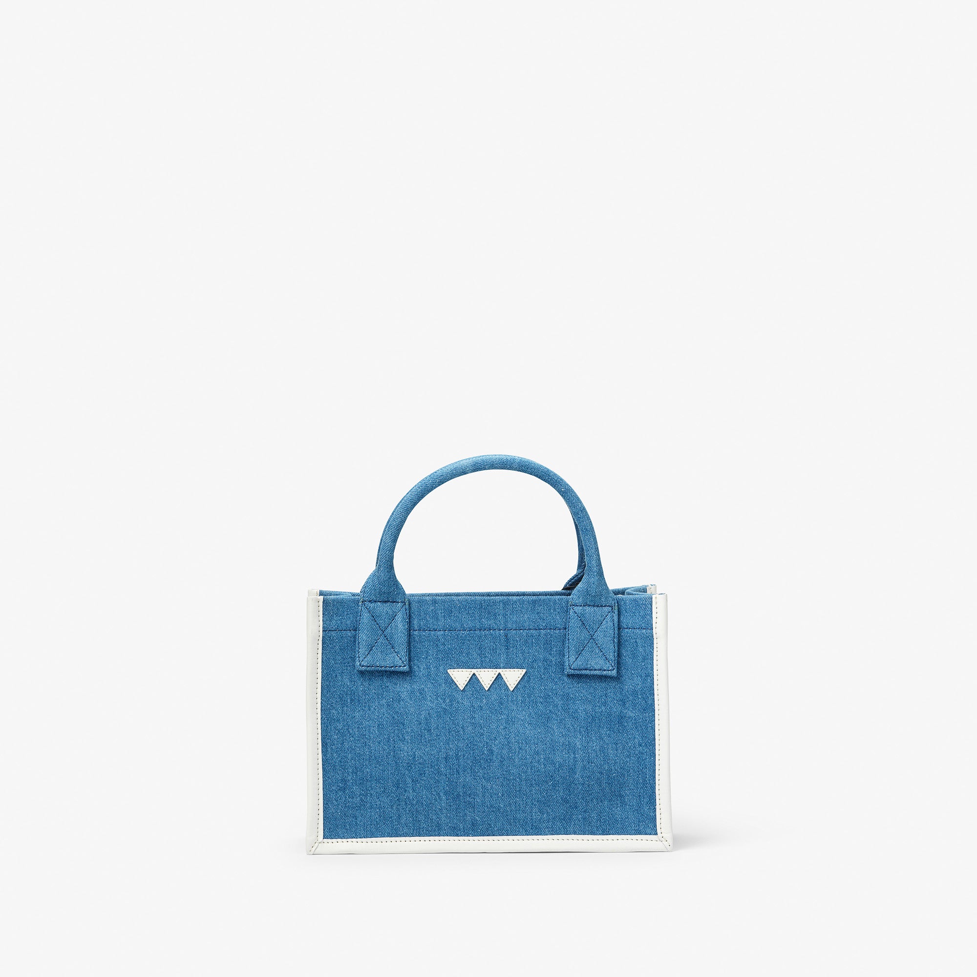 Denim Tote Bag - Small, White leather