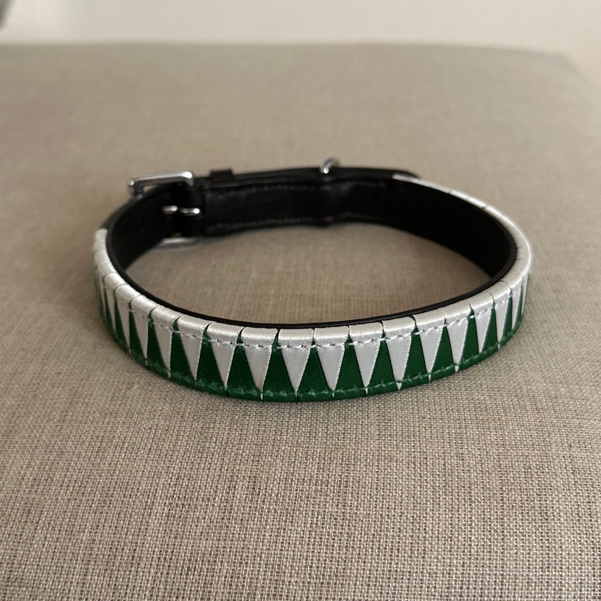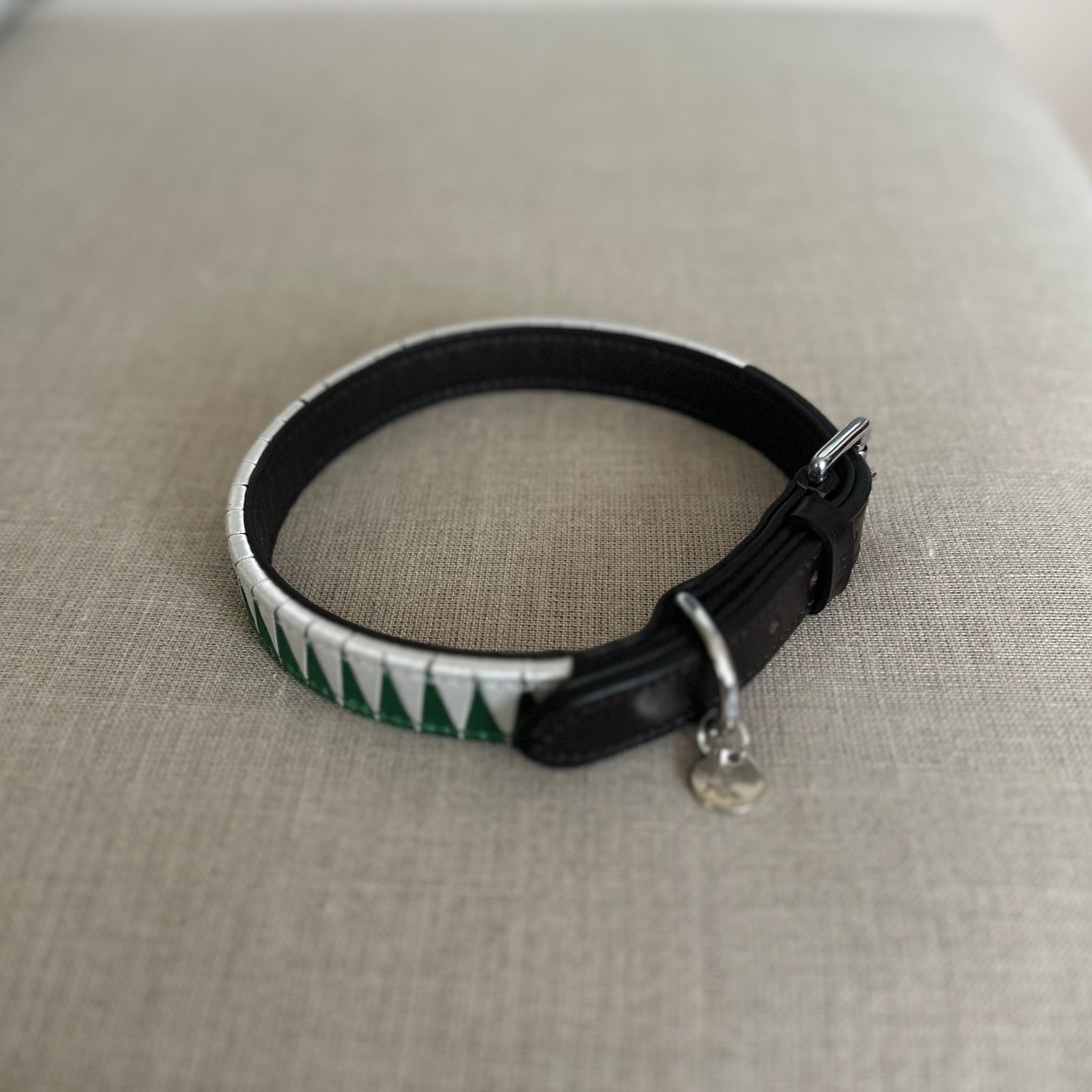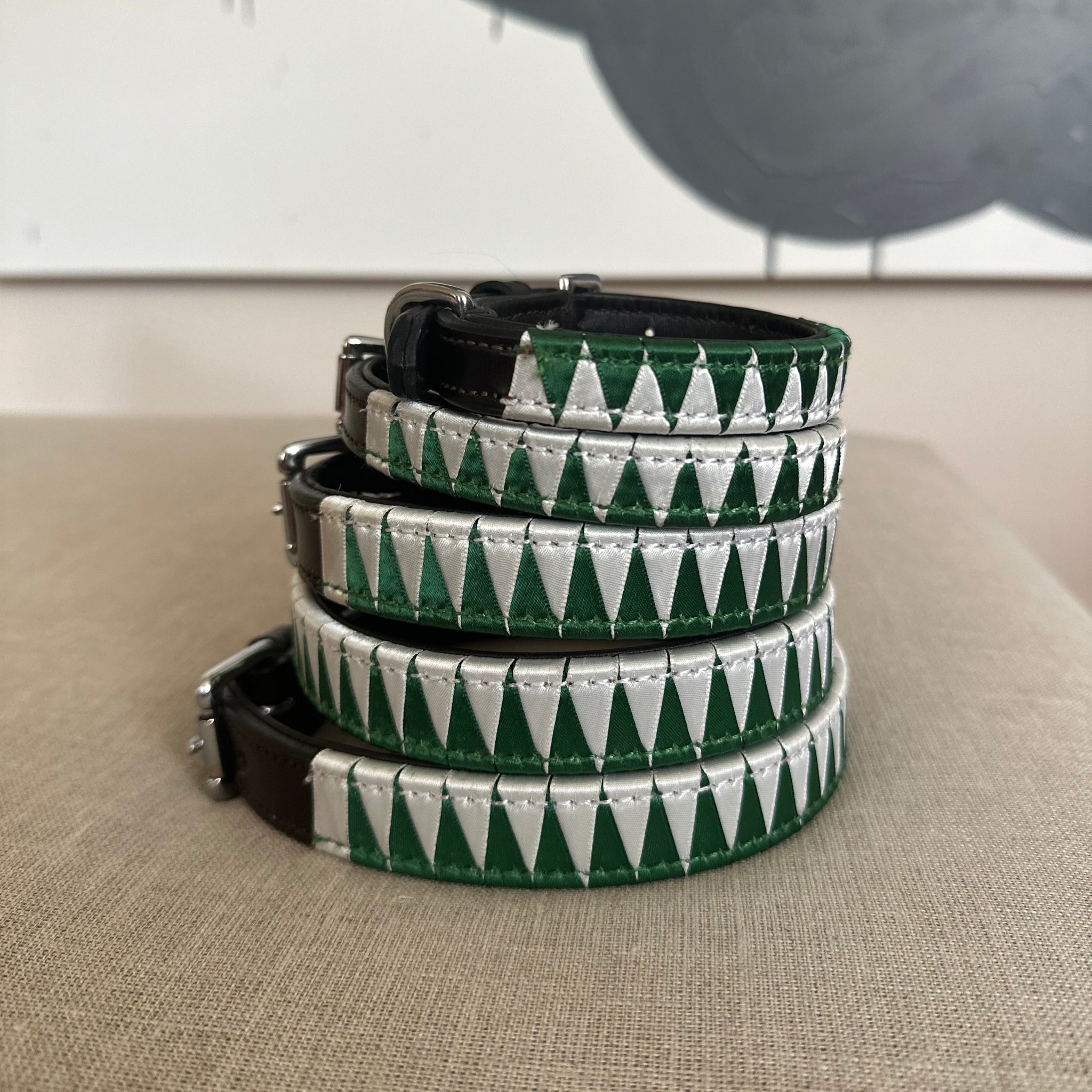 Get the Gallop's hundhalsband kännetecknas av det klassiska hajtandsmönstret. Med en hållbar och lyxig känsla är detta halsband flätat och sytt på engelskt vegetabiliskt garvat läder.